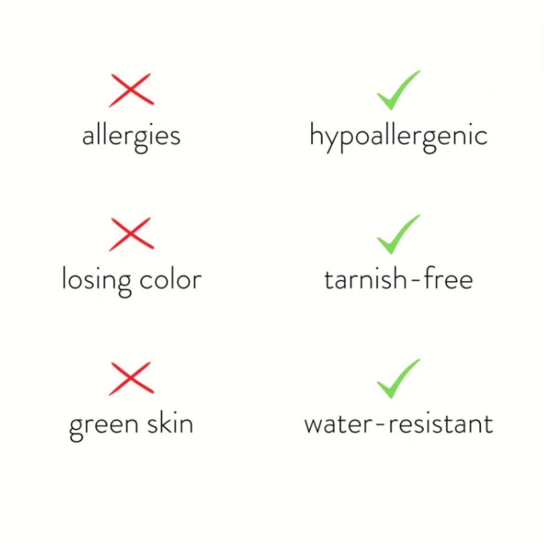 Our jewellery is durable, skin-friendly, tarnish-resistant and waterproof. Each piece is carefully crafted to maintain its shine and provide lasting comfort for everyday wear.