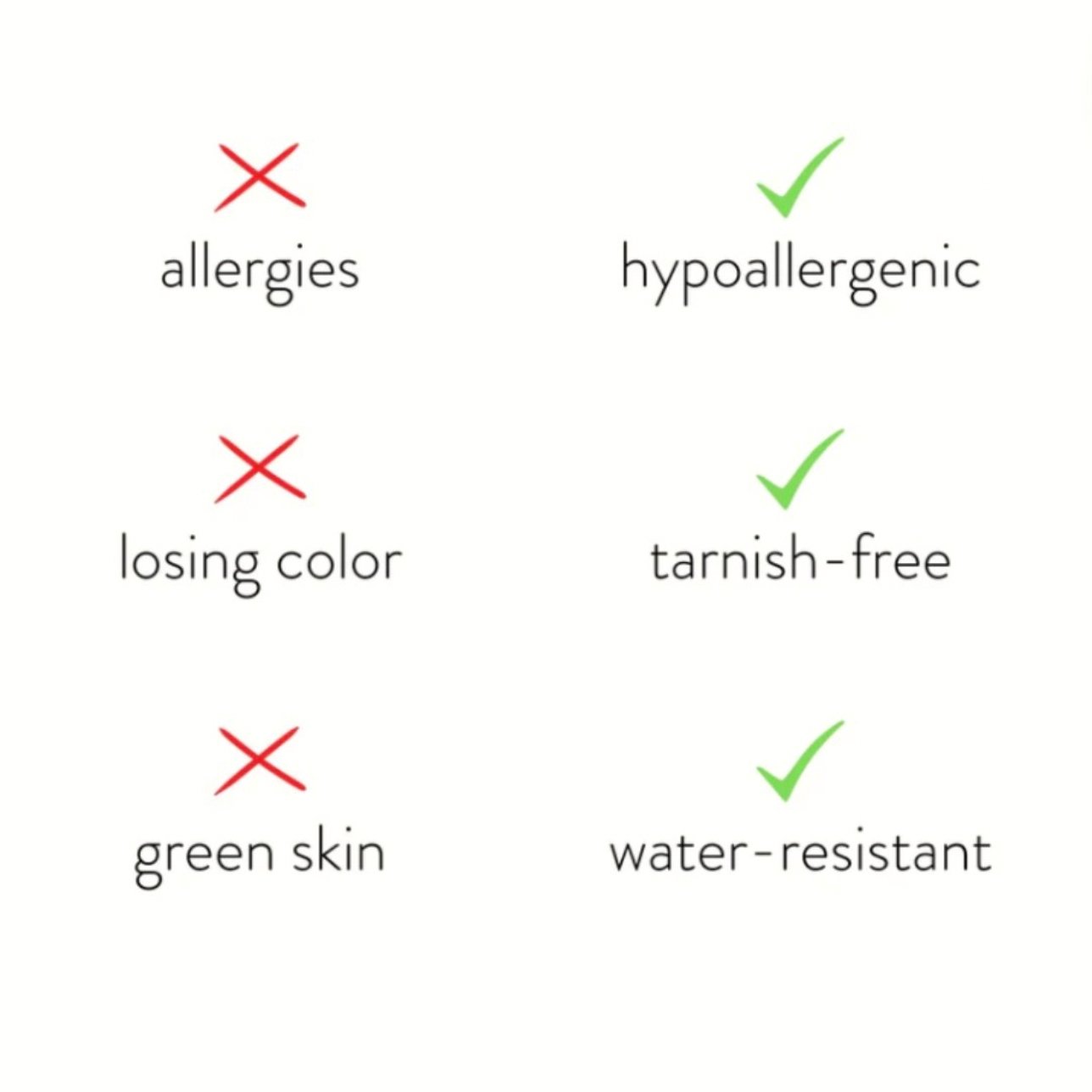 Our jewellery is durable, skin-friendly, tarnish-resistant and waterproof. Each piece is carefully crafted to maintain its shine and provide lasting comfort for everyday wear.