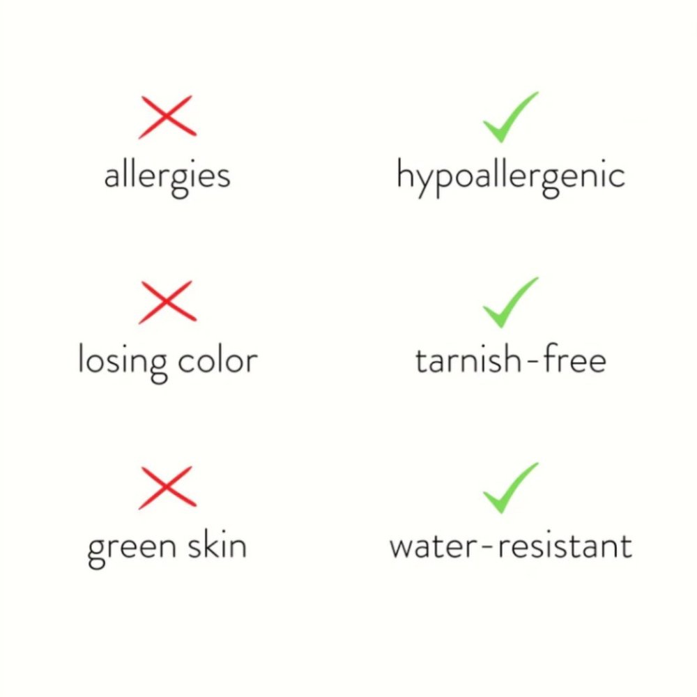 Our jewellery is durable, skin-friendly, tarnish-resistant and waterproof. Each piece is carefully crafted to maintain its shine and provide lasting comfort for everyday wear.