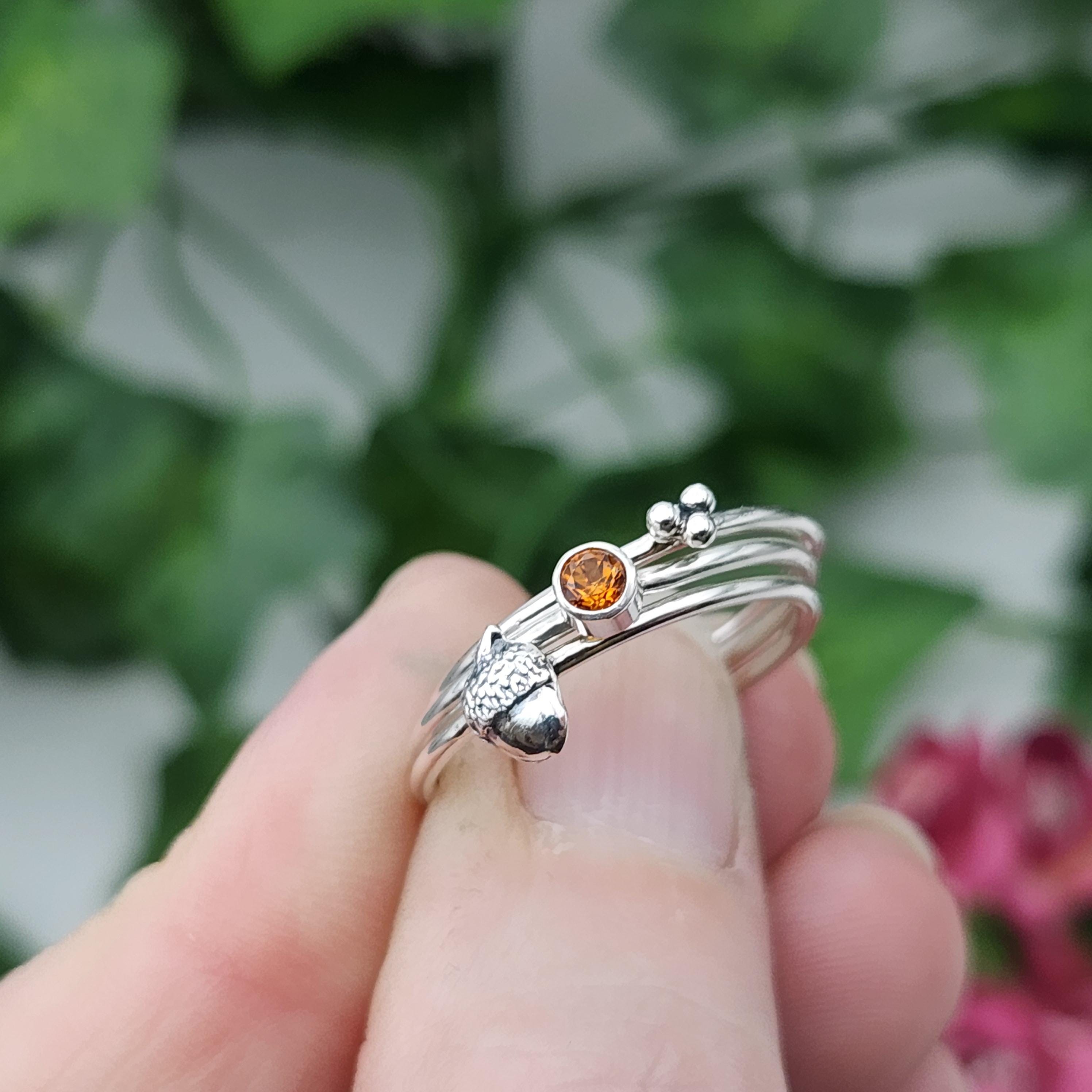 Handmade Sterling Silver & Citrine Autumn Acorn Ring Set